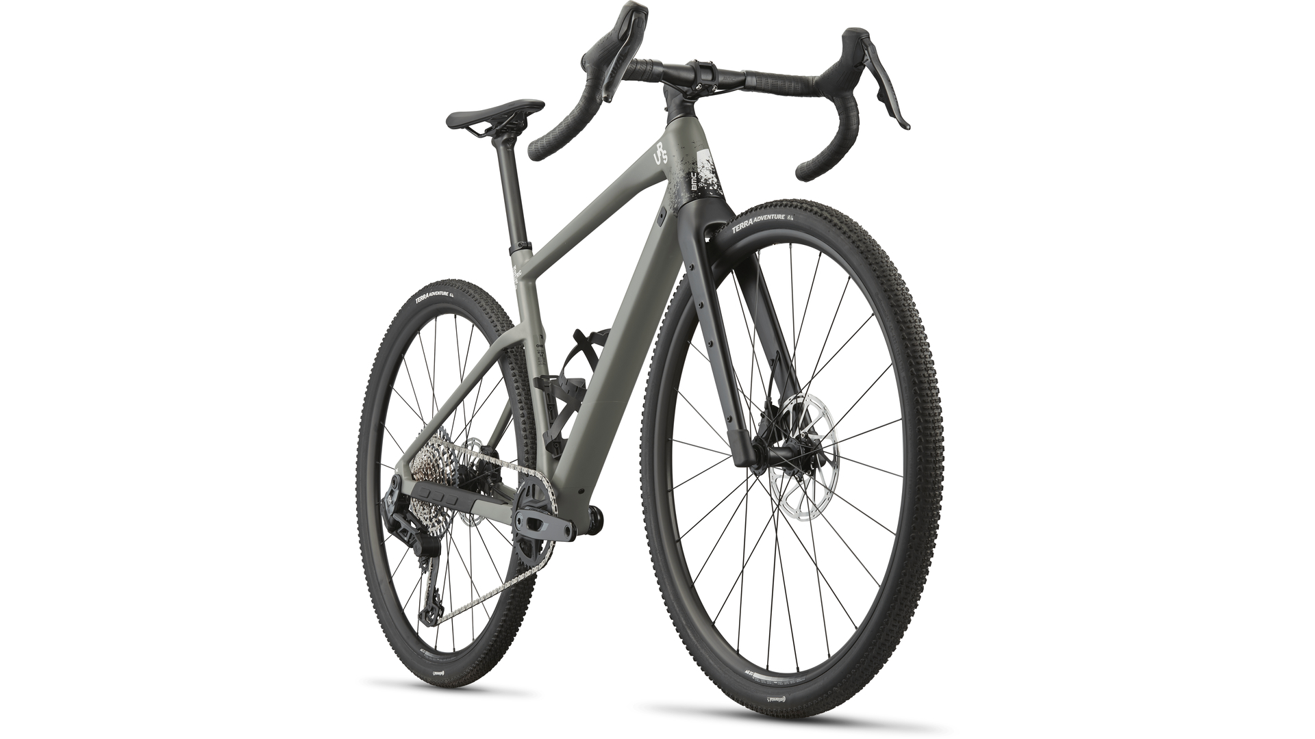 Fork:URS Gen 2 | Advanced Carbon | Internal Brake & Hub Dynamo Cable Routing | Fender Mounts | Cargo Mounts | Flat Mount Disc | 12 x 100mm Thru-AxleCockpitStem:BMC RSM 01 | Integrated Cockpit System TechnologyHandlebar:BMC HB D4 03, 0, 16 | Alloy 6061 | Gravel Geometry | 115mm drop, 70mm reach, 16° flareGrips:BMC Tacky 3mmSeatSeatpost:URS | Carbon D-Shaped Seatpost | 0mm Offset | D-Fender CompatibleSaddle:Fizik Vento Argo X5 | 140mmDrivetrainCrankset:SRAM Rival XPLR AXS Wide (FC-RIV-1W-E1)Chainrings:38TCassette:SRAM XS-1275 Eagle Transmission (CS-XS-1275-A1)Cassette Size:10-52TChain:SRAM GX Eagle Transmission Flattop (CN-TTYP-GX-A1)Rear Derailleur:SRAM GX Eagle Transmission (RD-GX-E-B1)Shifters:SRAM Rival AXS (ED-RIV-E1)Gears:1 x 12Bottom Bracket:SRAM DUB PressFit Bottom Bracket (BB-DUB-PF-A1)BrakesBrake Levers / Calipers:SRAM Rival AXS (ED-RIV-E1)Rotors:SRAM CenterLine Rotor (RT-CLN-A2)Rotor Size (F/R):180 / 160mmWheelsRims:AG 20 | Tubeless Ready | 20mmHubs (F/R):CL-712 & RXC-1425 Center LockTires:Continental Terra Adventure Trail Grip | Tubeless | 45mmTubeless Information:Tubeless Rim | Tubeless TiresAccessoriesIn the Box:X-Cages ?Storage PouchAdditional InformationTire Clearance:47mm measured tireWeight without Pedals:9.4kg | Size M as pictured with all accessoriesASTM Classification:Level 2System Weight Limit:120kg